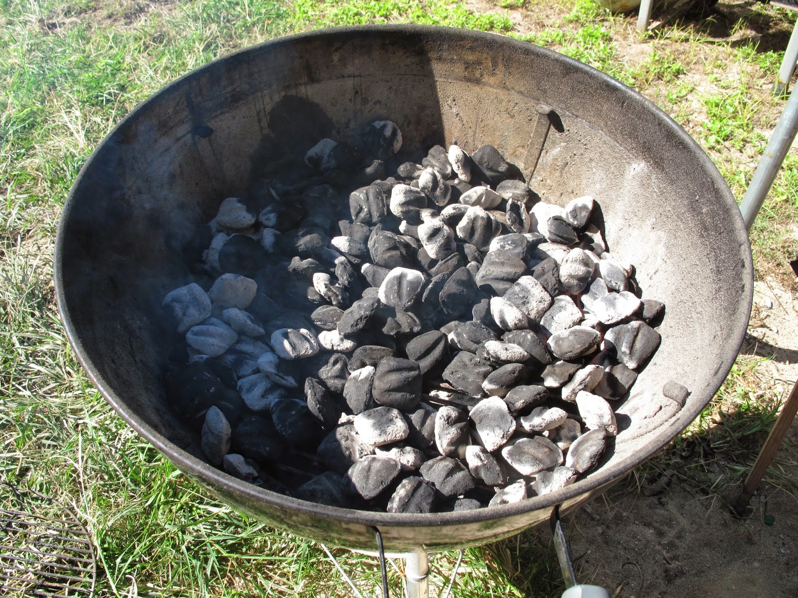 Make sure charcoal is spread evenly under the pan.