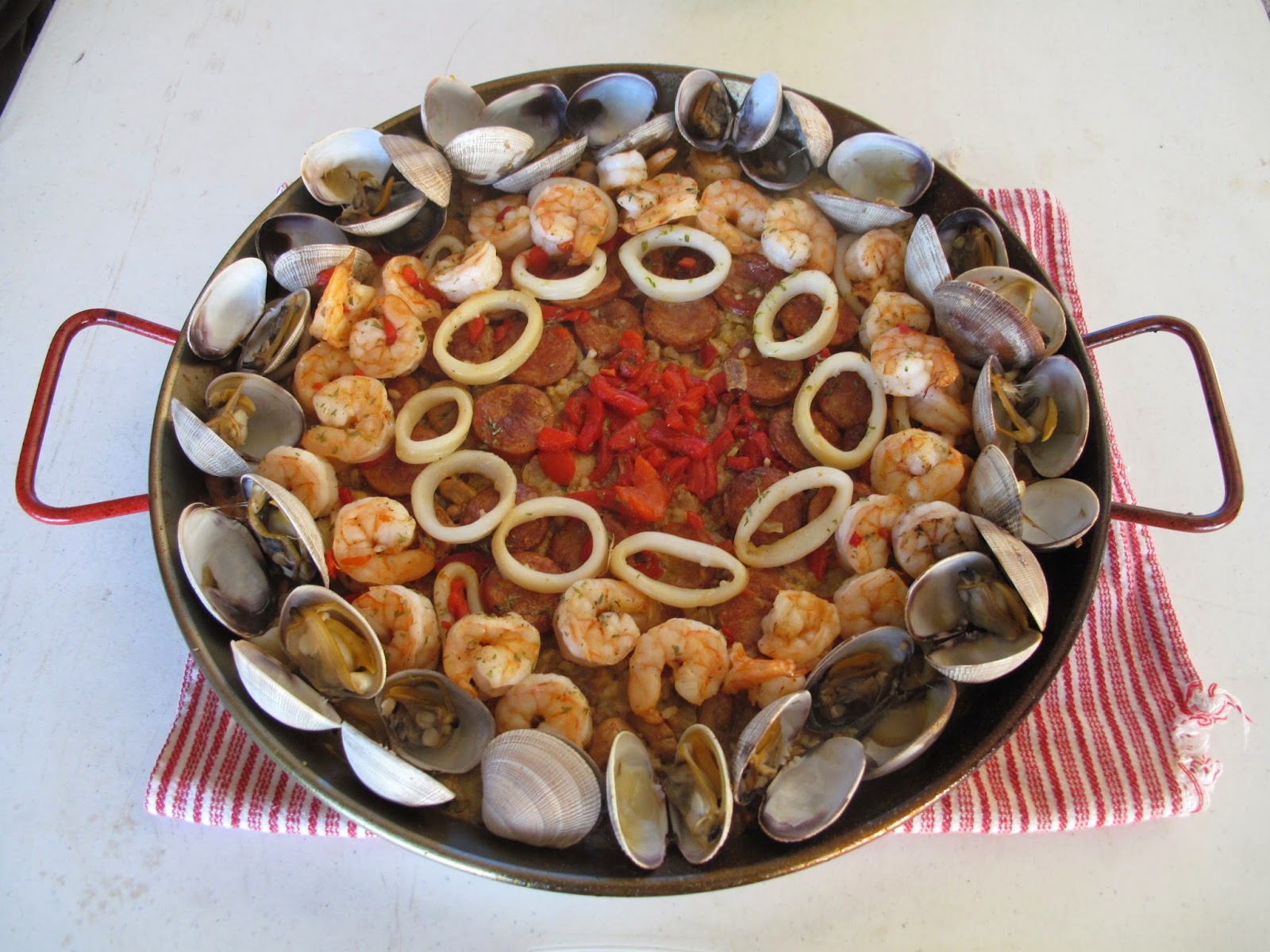 Add seafood. Once clams open, remove until rice is soft.